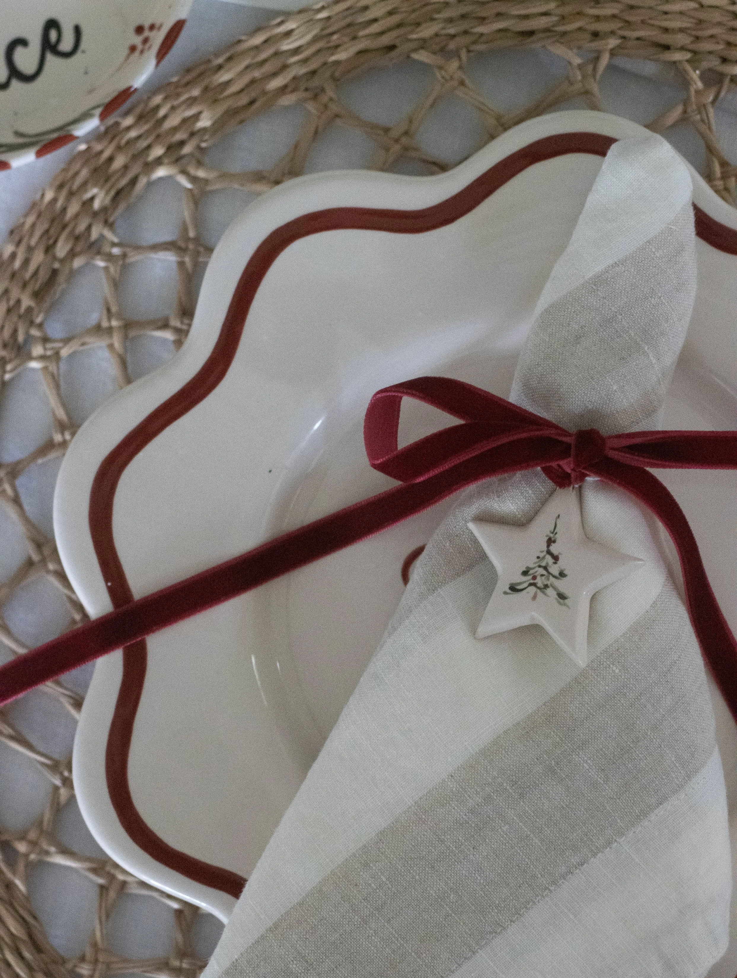 Ceramic country style mug hand-painted with a classic Christmas feel. The burgundy design gives a traditional yet timeless vibe. Choice of the following text options: