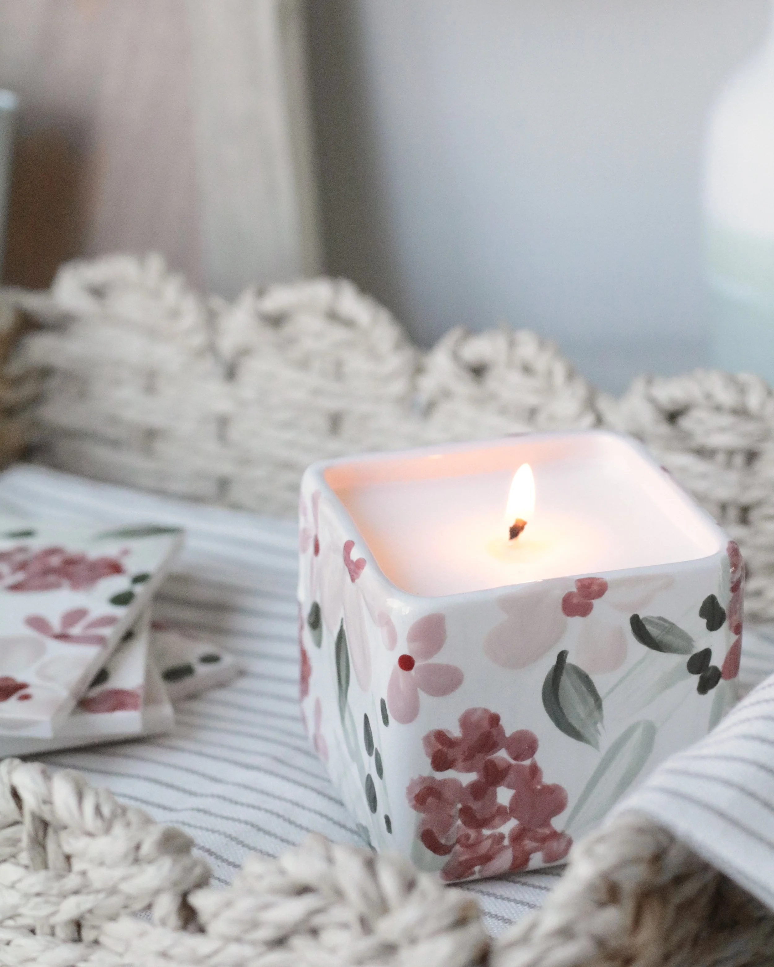 Hand-painted ceramic square coasters in a set of 4.
