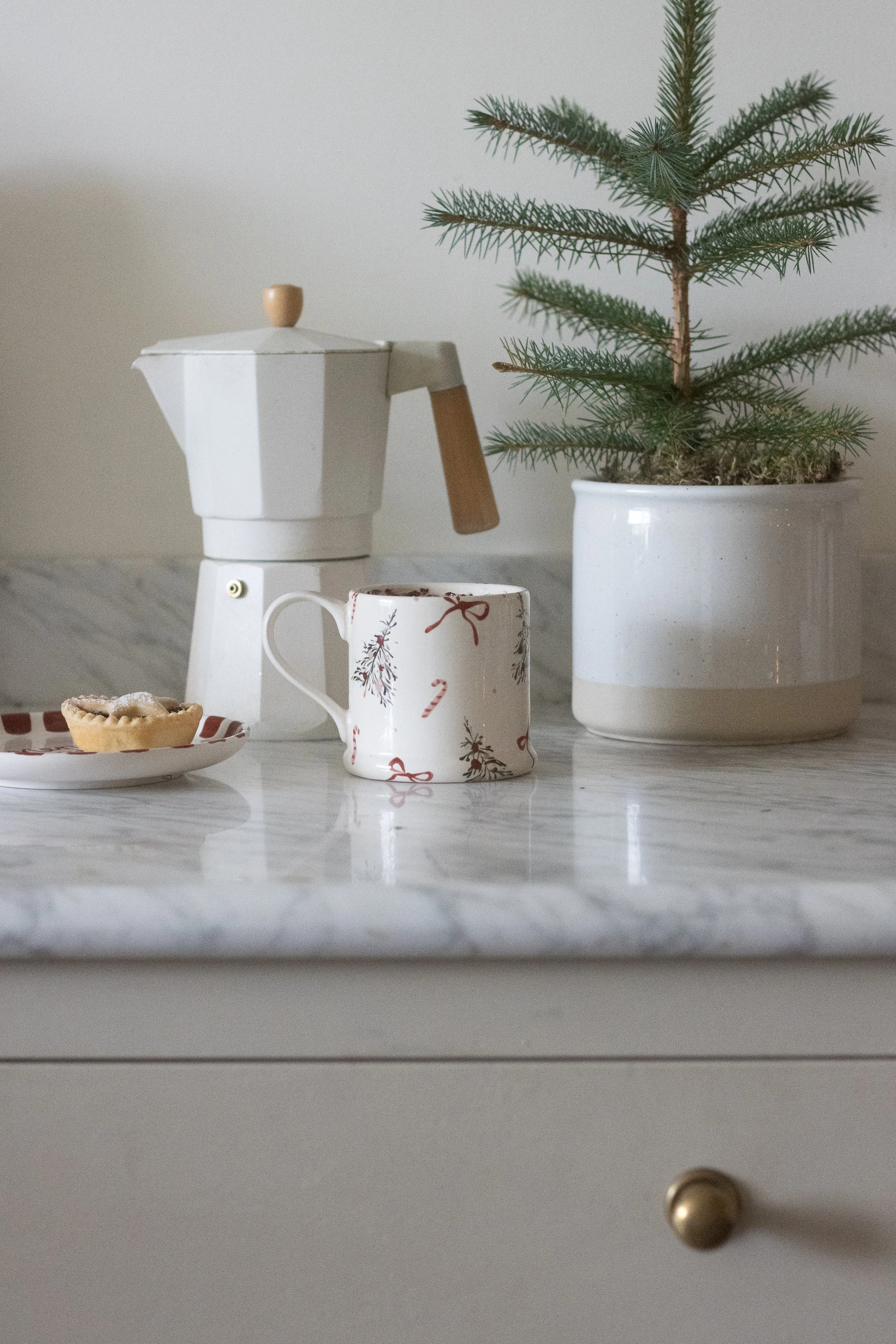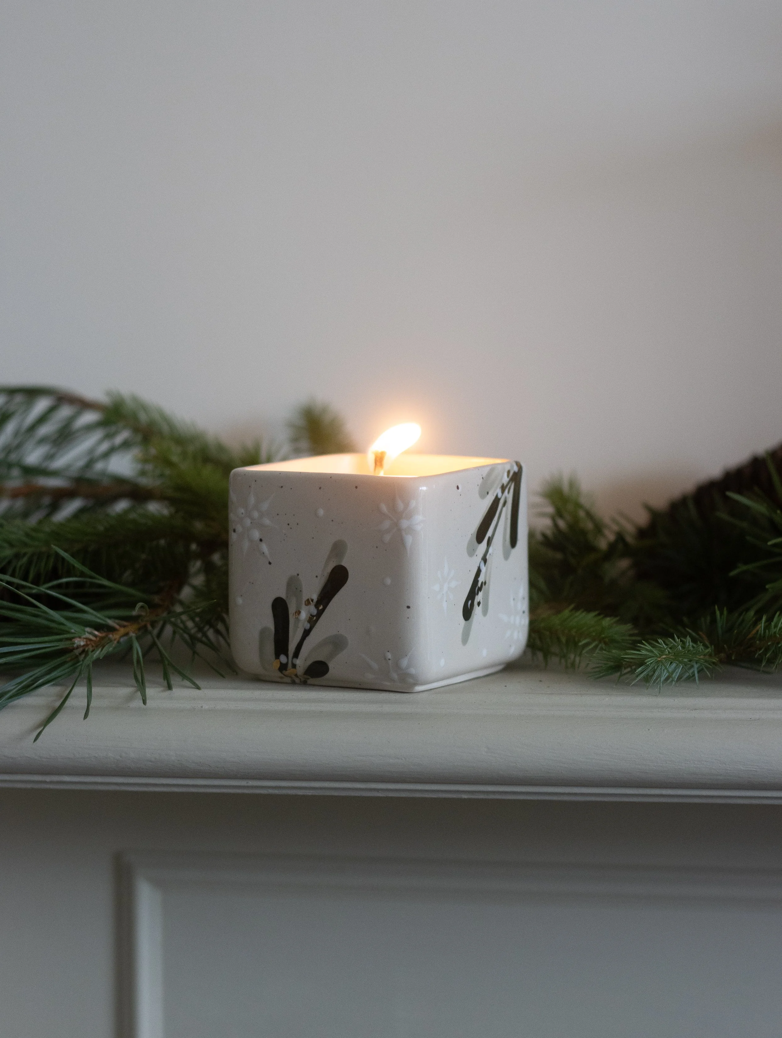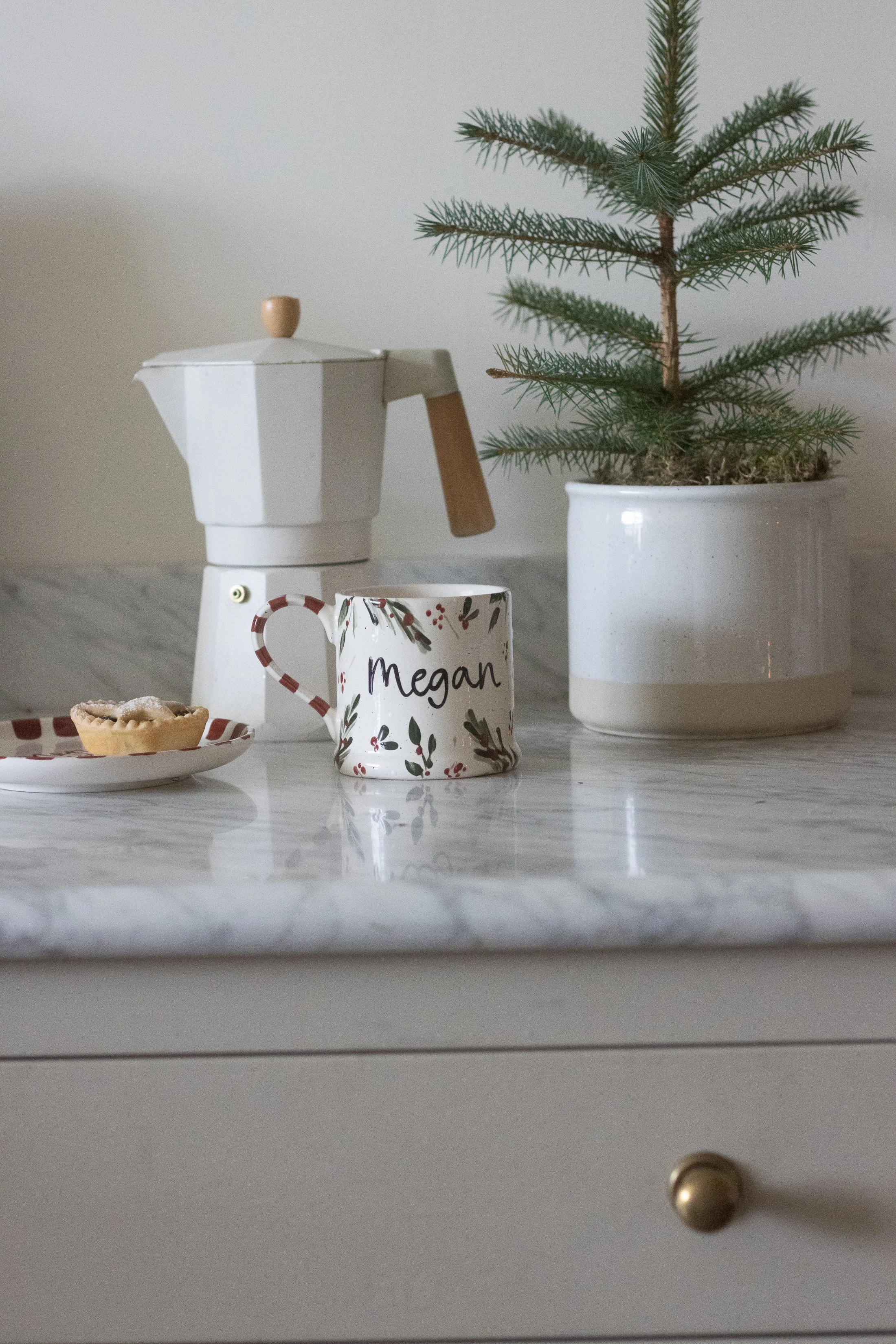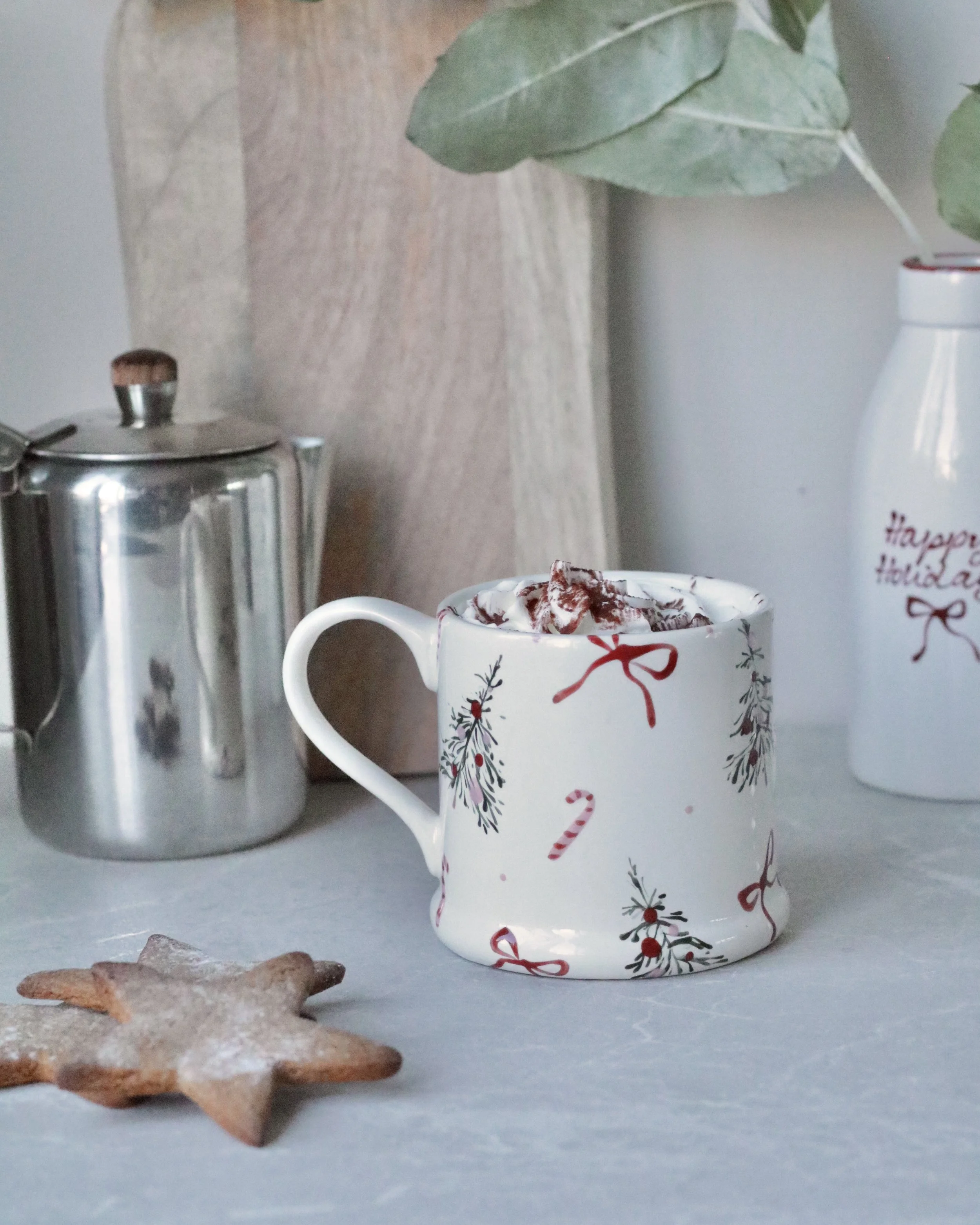 Pack of 3 mini ceramic decor pieces. Choose from either a pack of stars or a pack of hearts. Star decorations feature a hand-painted Christmas tree and the heart decoration feature our festive foliage design.