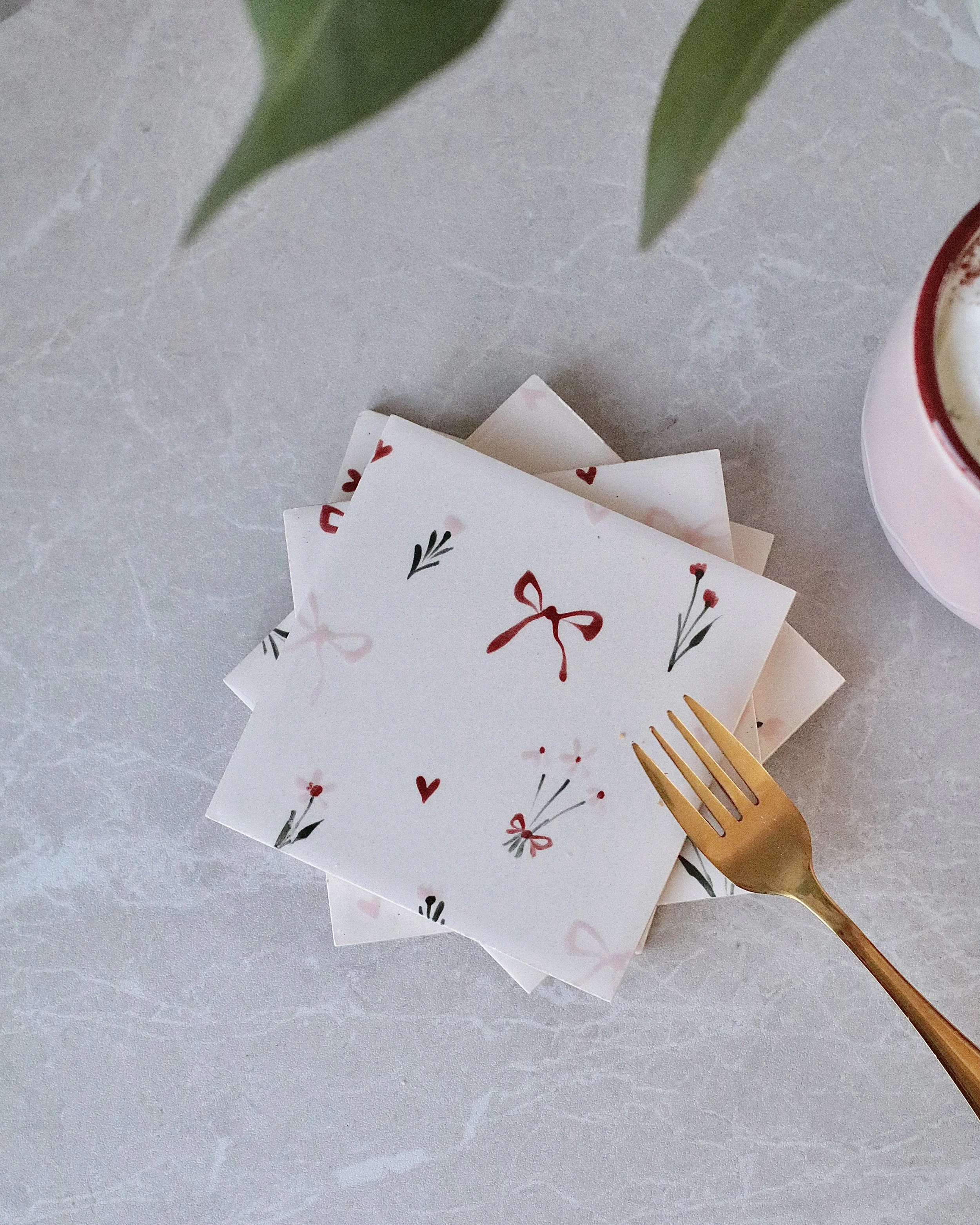 Hand-painted ceramic square coasters in a set of 4.