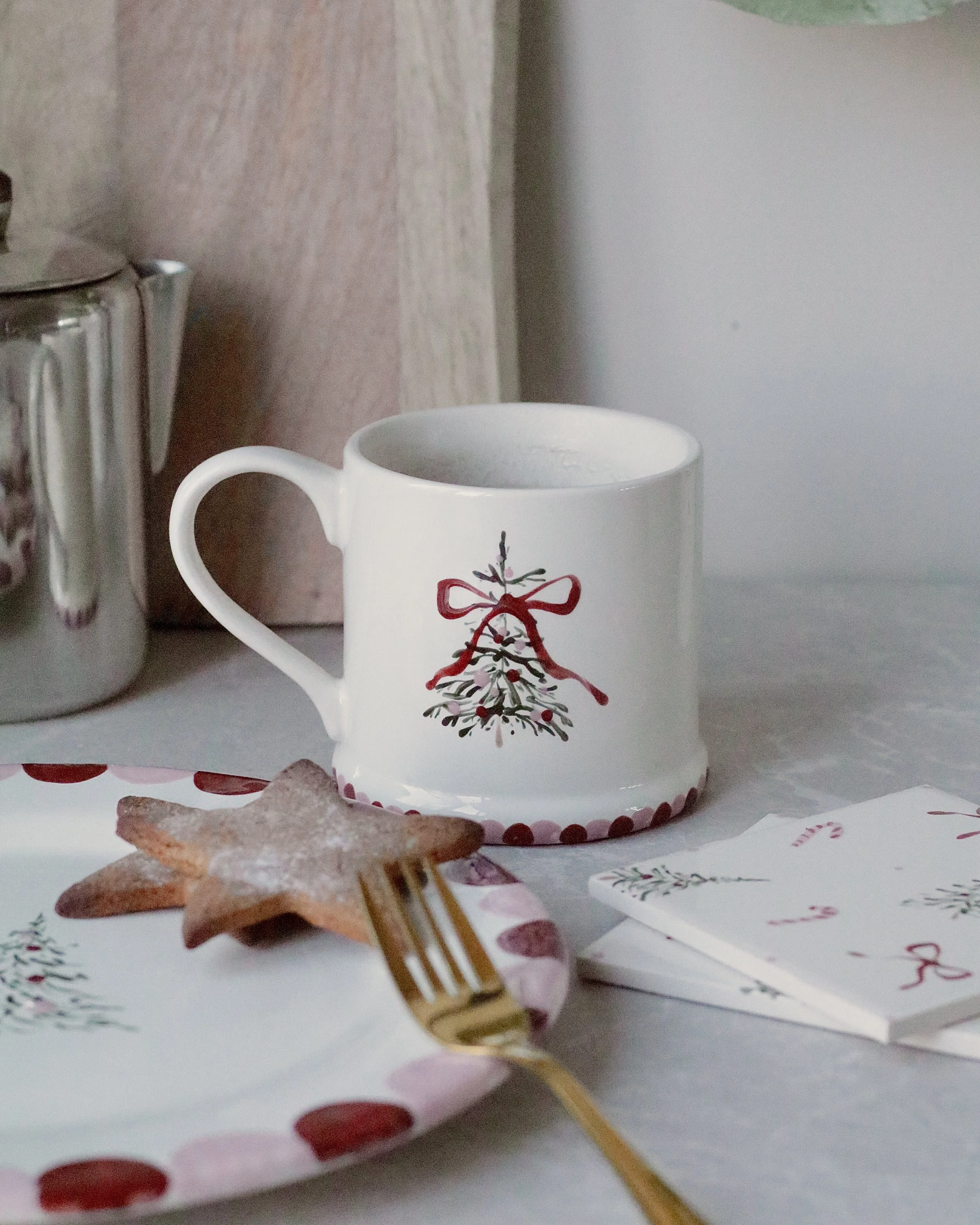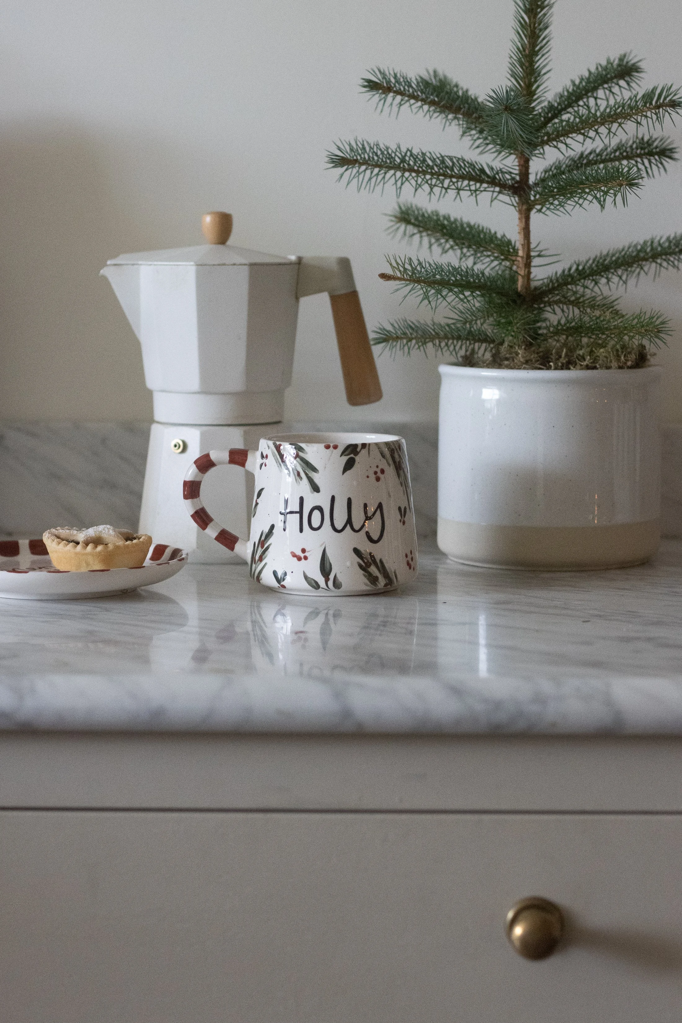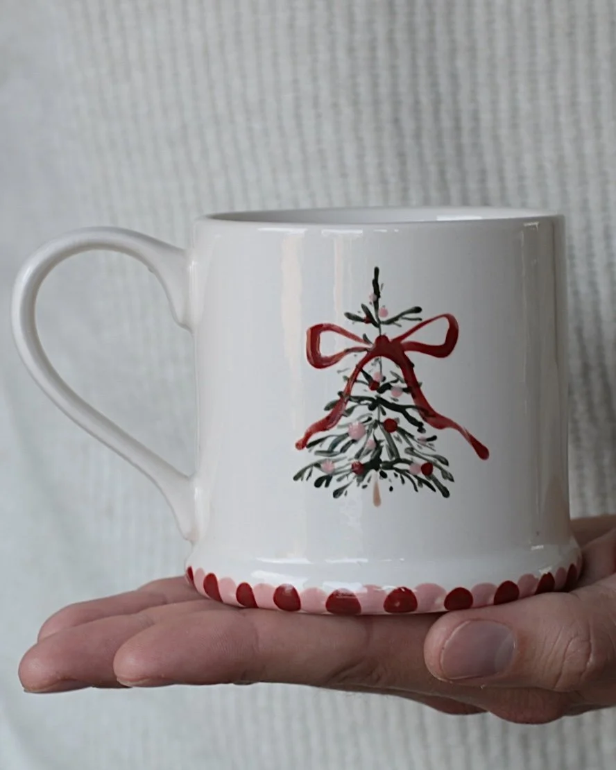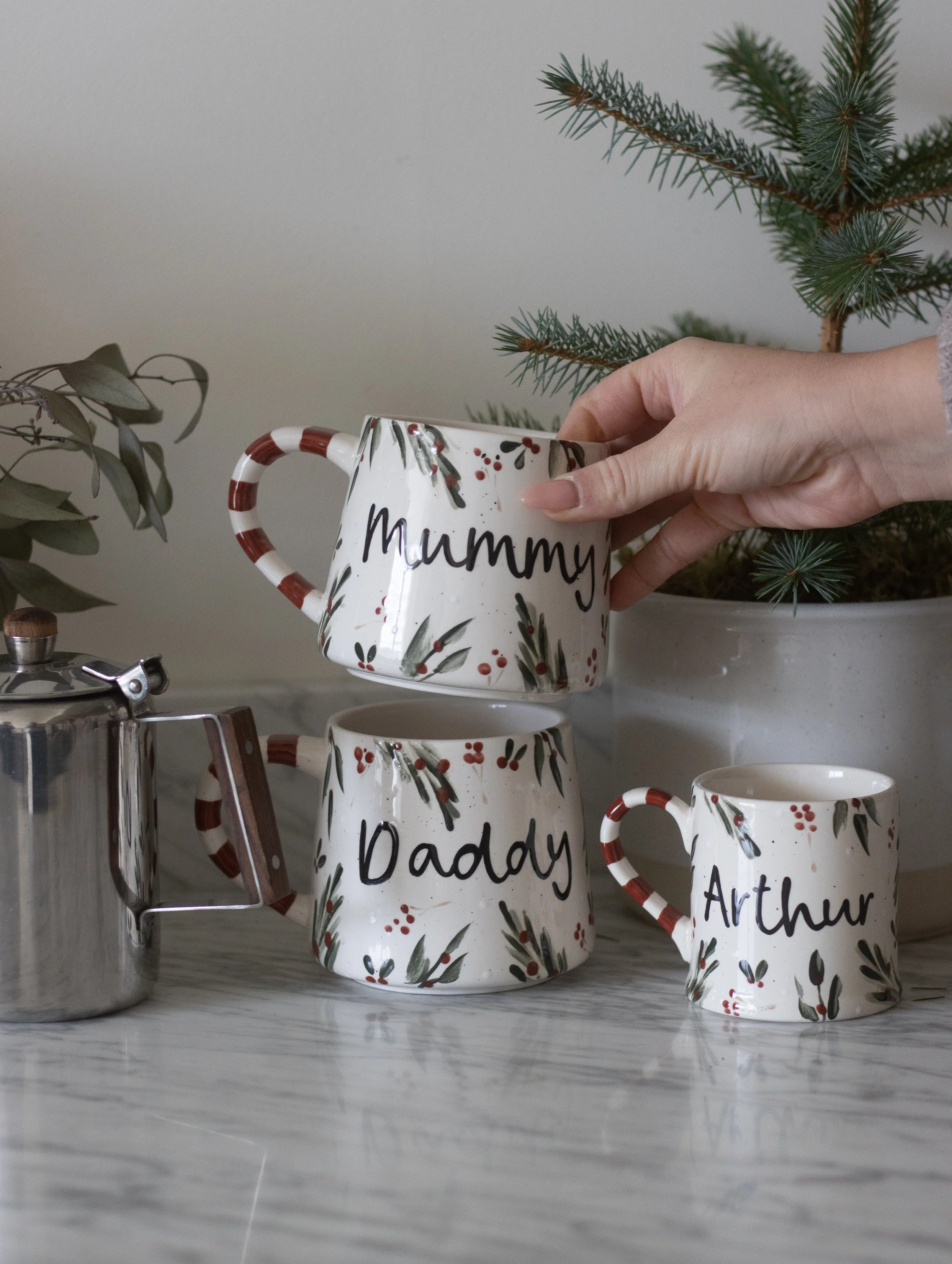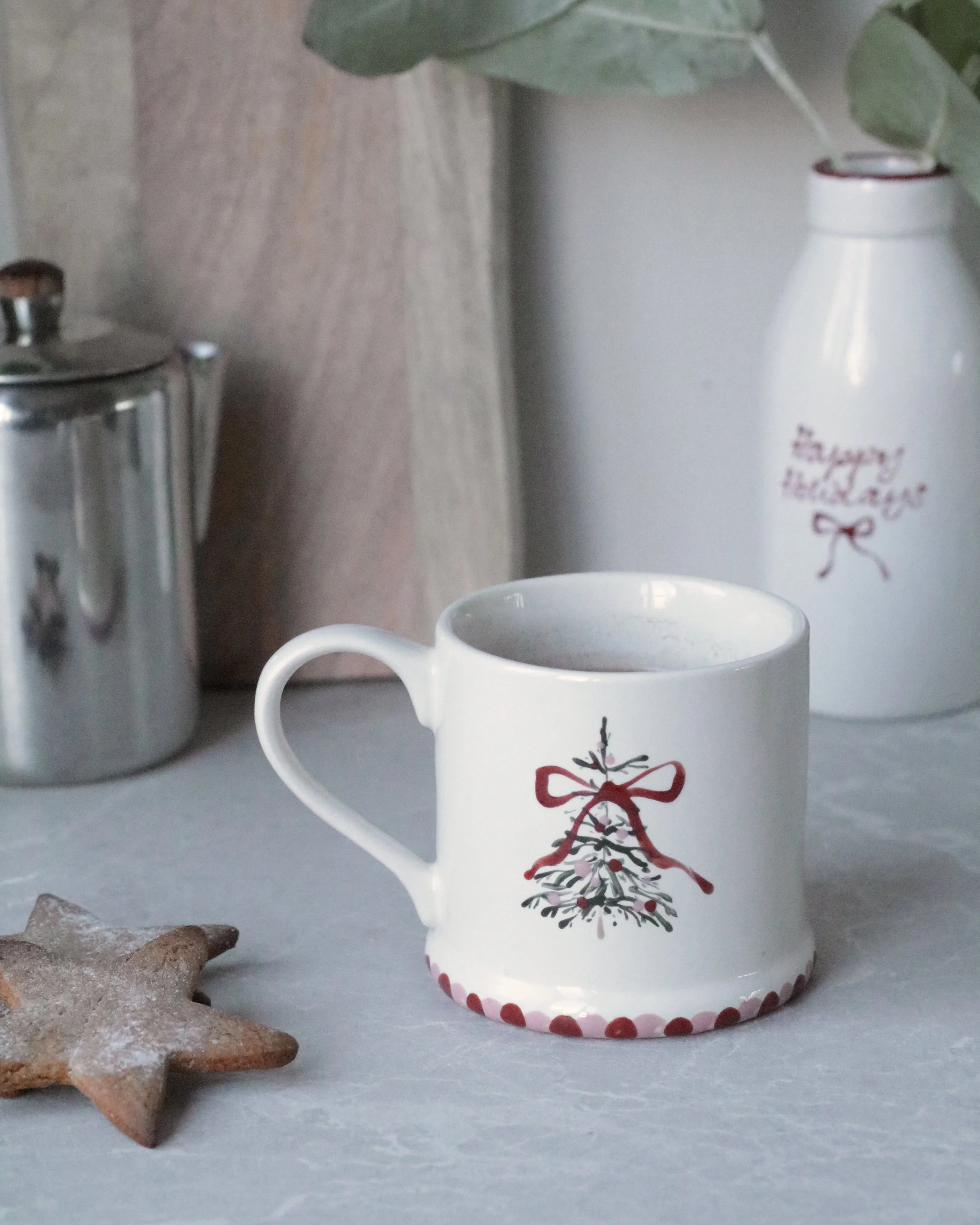 Ceramic country mug hand-painted in our rustic Christmas designs with hints of gold detailing.